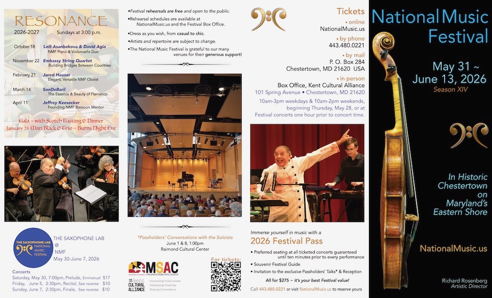 There are numerous ways to get involved with and support the National Music Festival. Please consider making a tax-deductible contribution to support the Festival – without your help we would not be able to bring over 100 apprentice musicians to Chestertown each June on full scholarship.
